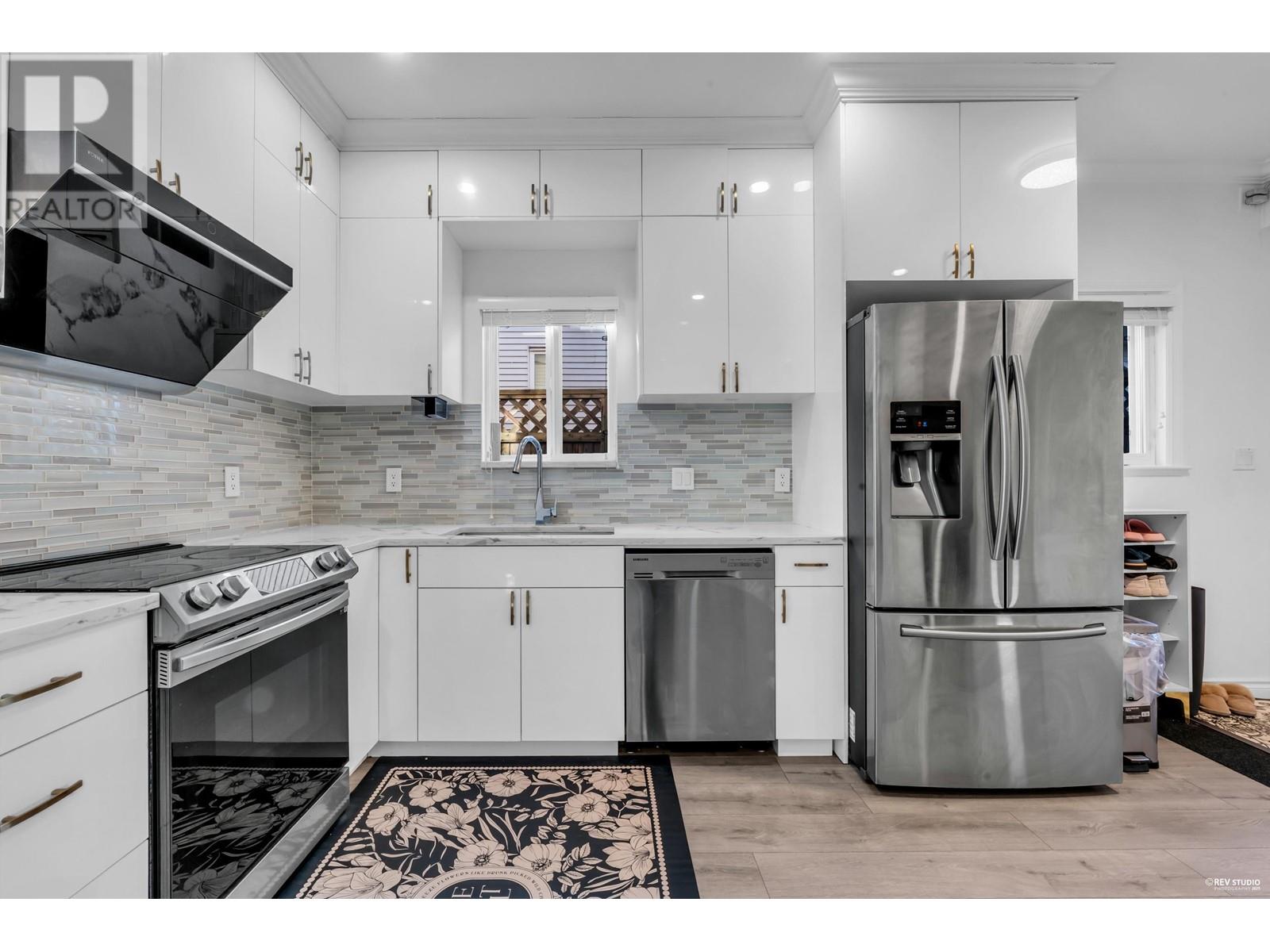 A well-maintained 1/2 duplex with high ceilings, offering 4 bedrooms and 3.5 bathrooms. Ideally located near Canada Way and Kingsway, it´s within walking distance to Twelfth Avenue Elementary, St. Thomas More Collegiate, and New Westminster Secondary. Nearby amenities include Langley Farm Market, Highgate Shopping Centre, coffee shops, and restaurants, with Metrotown just a 10-minute drive away. Top Floor: 3 spacious bedrooms and 2 full bathrooms. Main Floor: High ceilings create a welcoming entrance, with a living and dining room finished with laminate flooring. The kitchen boasts natural maple cabinetry, granite counter tops, and a movable island. Rental Suite: A 1-bedroom side rental suite with a separate entrance, featuring a modern kitchen and a spacious living Room.