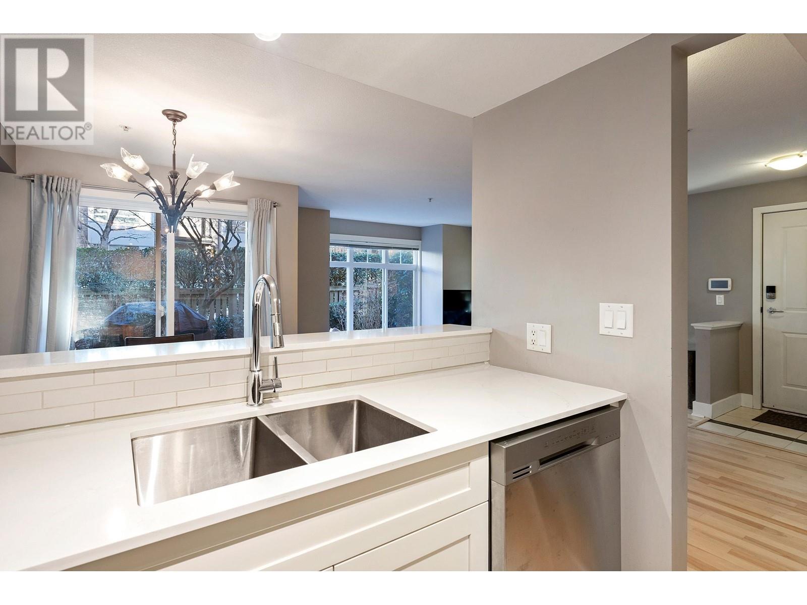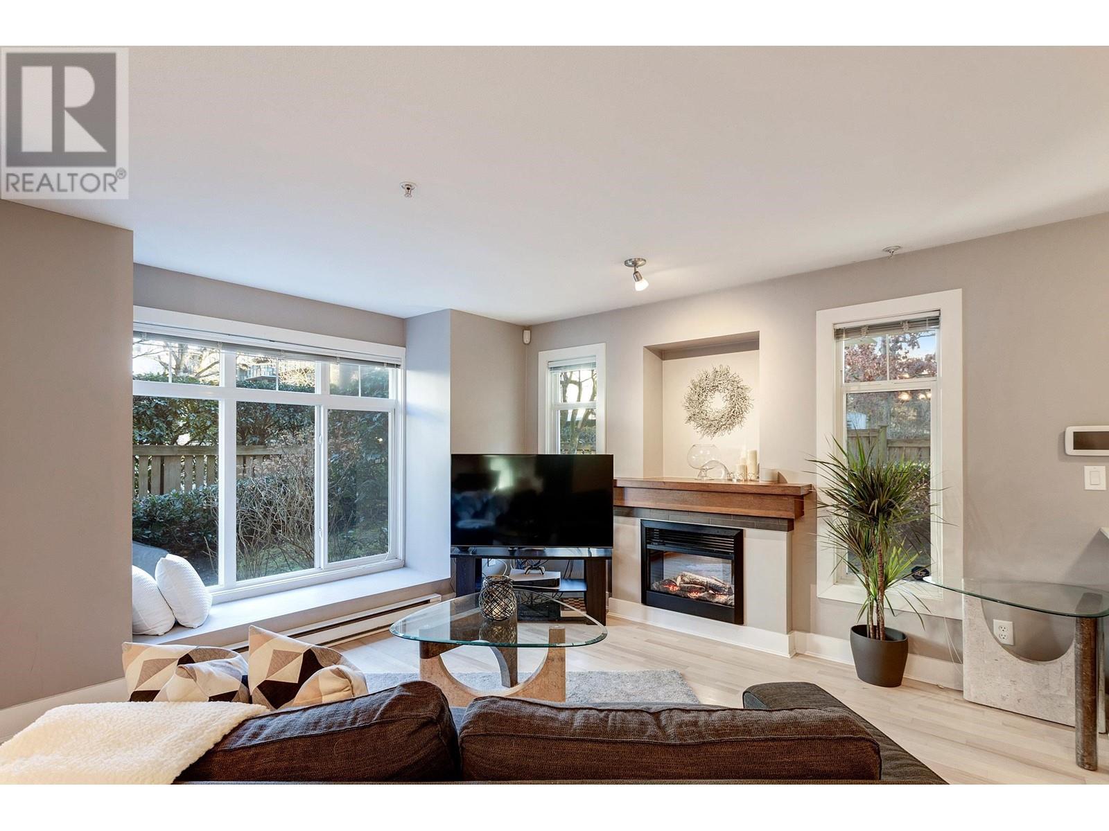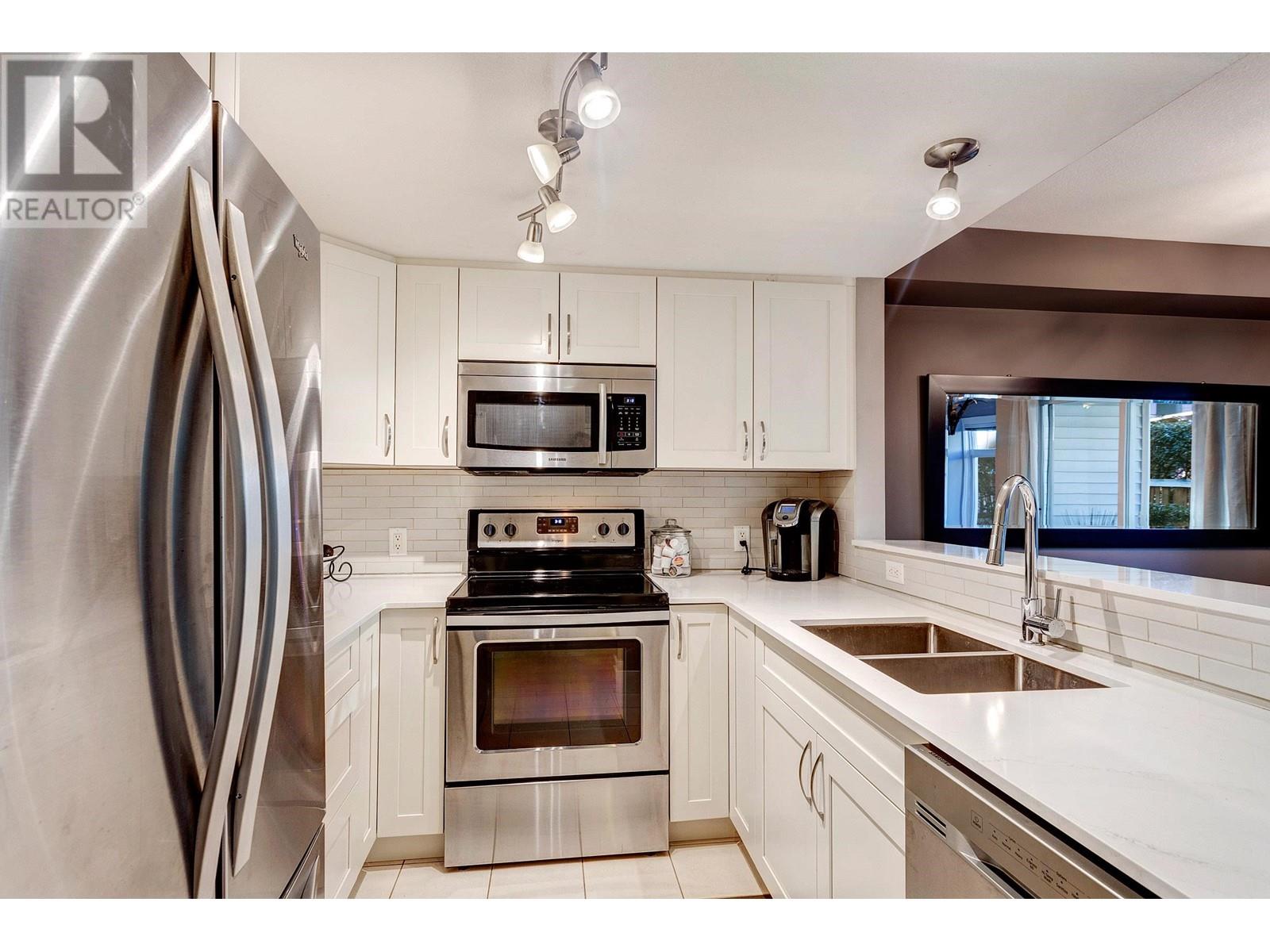 LEDGESTONE II - Beautifully updated ground floor end unit townhouse in South Burnaby. Southeast facing garden suite home with large wrap around yard and 2 patios. Open floor plan that flows with day to day living. Recently renovated, bright white kitchen (2022) overlooks spacious dining room and large living room with fireplace. Two generously sized bedrooms. The Primary Bedroom features a large walk-in closet and recently renovated en suite. The second bathroom is also newly updated. Beautiful, light engineered flooring that has been refinished. New window coverings in dining room. This home comes with 1 parking stall and 1 storage locker. Close to Edmonds SkyTrain Station. The complete package!