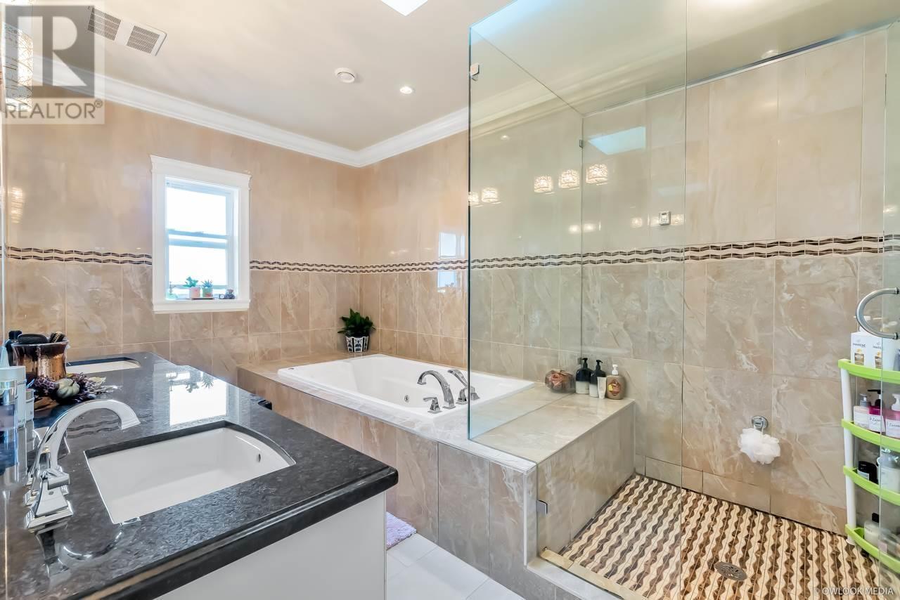 Beautiful Custom built home on Prestigious Woodwards Road! A rare opportunity to own a home in one of the best streets/neighbourhoods of Richmond. Rectangular south facing 7200 sqft lot with 3410 sqft interior finish. Main floor features include double height ceilings in all rooms, exquisite customer crown moulding, grand marble foyer, and crystal chandeliers. Open grand kitchen with large island and granite countertops and S/S appliances + wok kitchen. Downstairs also include media room, guest room, office, and 4 spacious Bedroom with ensuite upstairs. Radiant heating, HRV, A/C throughout. 3 car garage, private fencing with powered gate. School catchment Errington Elementary and Steveston-London Secondary!!